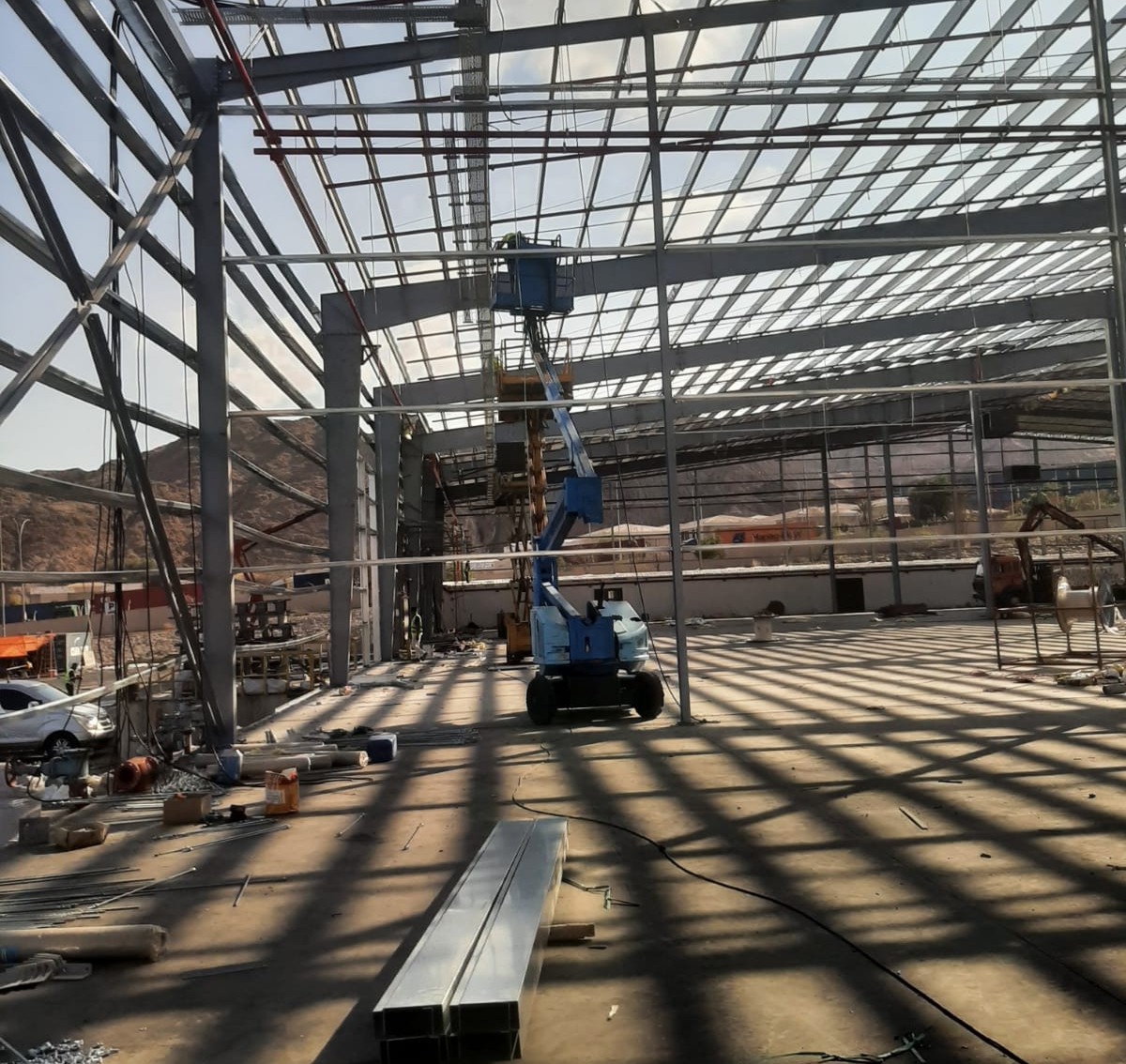 Fast-track steel structure project of re-implementing and reconstructing one of ALV’s warehouses, with an area of approximately (10,100) square meters, which was exposed to a fire hazard within the Village/Aqaba site. The project also included special hoarding, maintenance and replacement of damaged items, specialized internal mechanical works related to the type of stored materials used by the ALV.