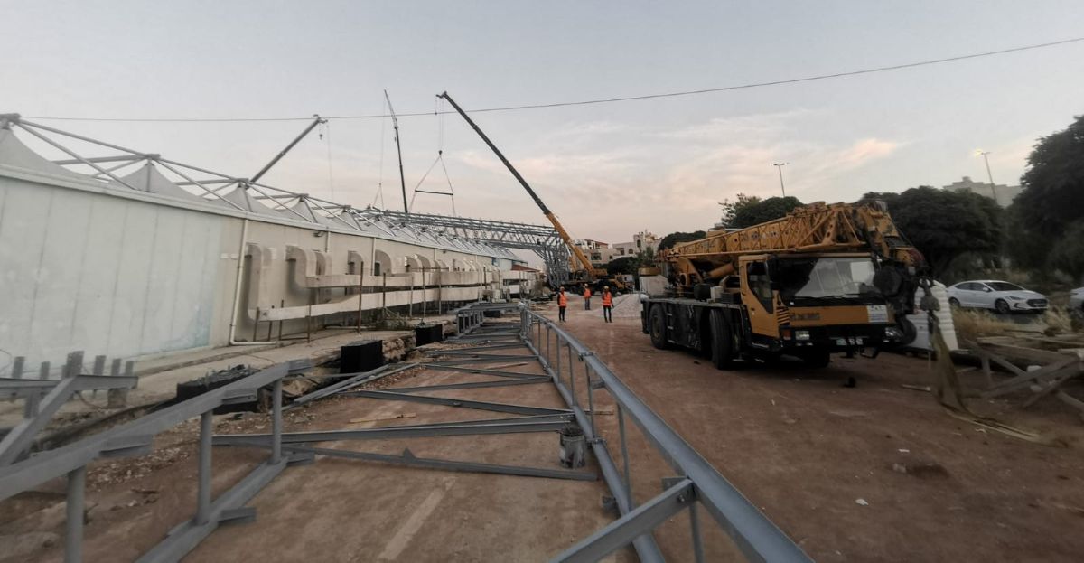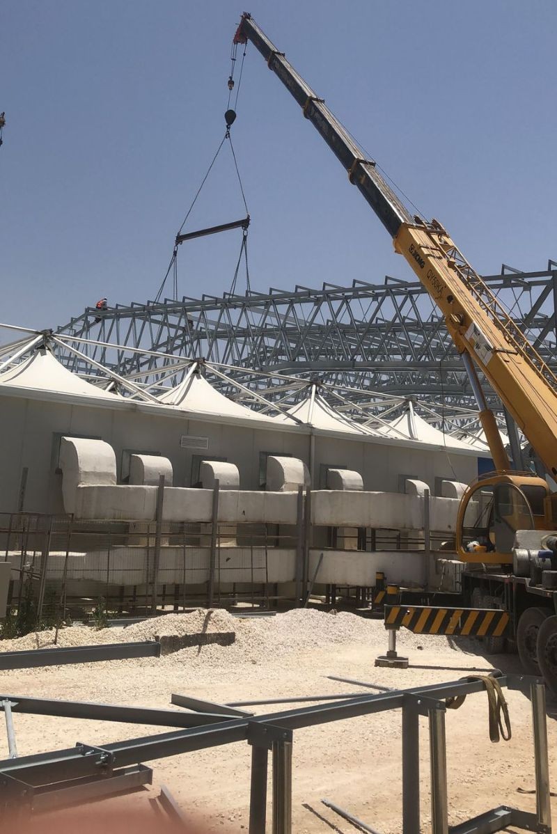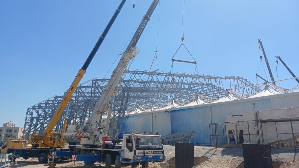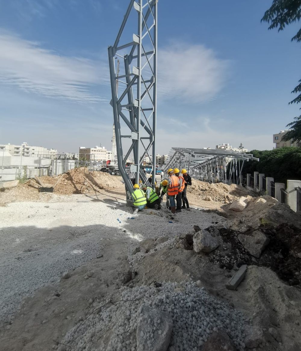 Fast-track steel structure project – The scope was to design and build a steel structure over an existing operational field hospital with an area of approximately 1100m2 in the heart of Amman, along with all related electromechanical works required for medical supplies storage